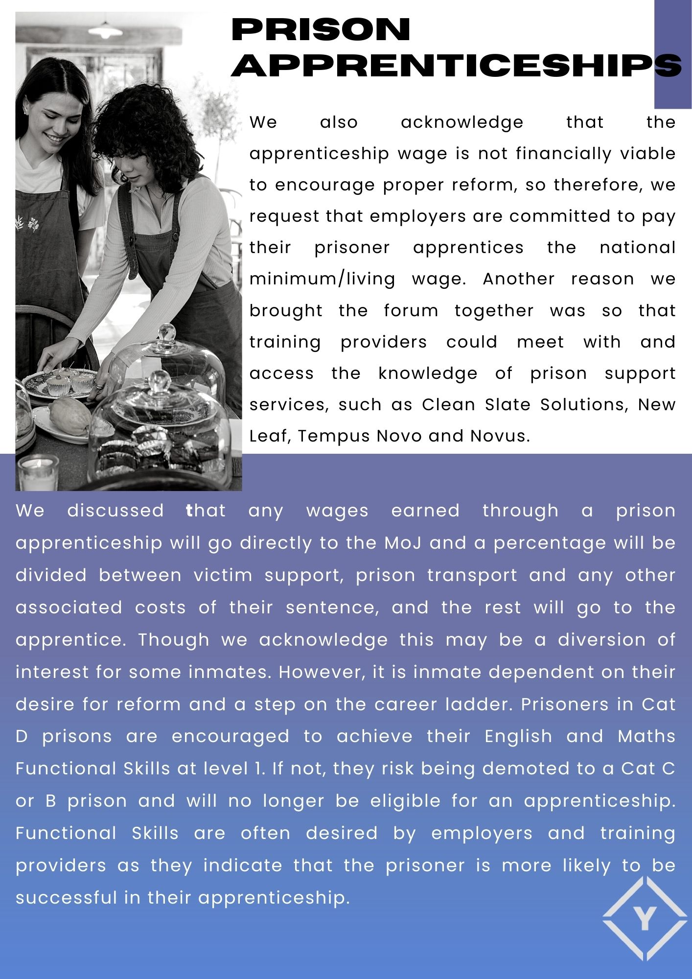 aspects of completing an apprenticeship. The current apprentice is employed at WYLP and the recently