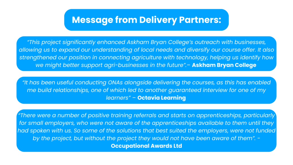 - The project has enabled a great alignment and relationship development between businesses and training providers, that will be seen and felt across North Yorkshire for a long time.